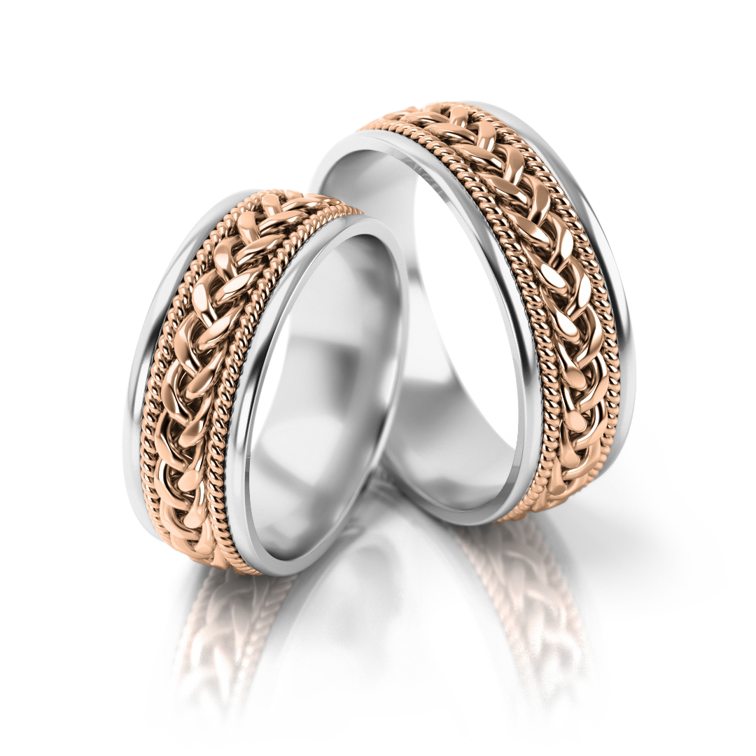 Die Kombination aus Flecht- und Drehmuster verleiht den Ringen einen unverwechselbaren Charakter – traditionell, symbolisch und lebendig, wie die Liebe selbst.