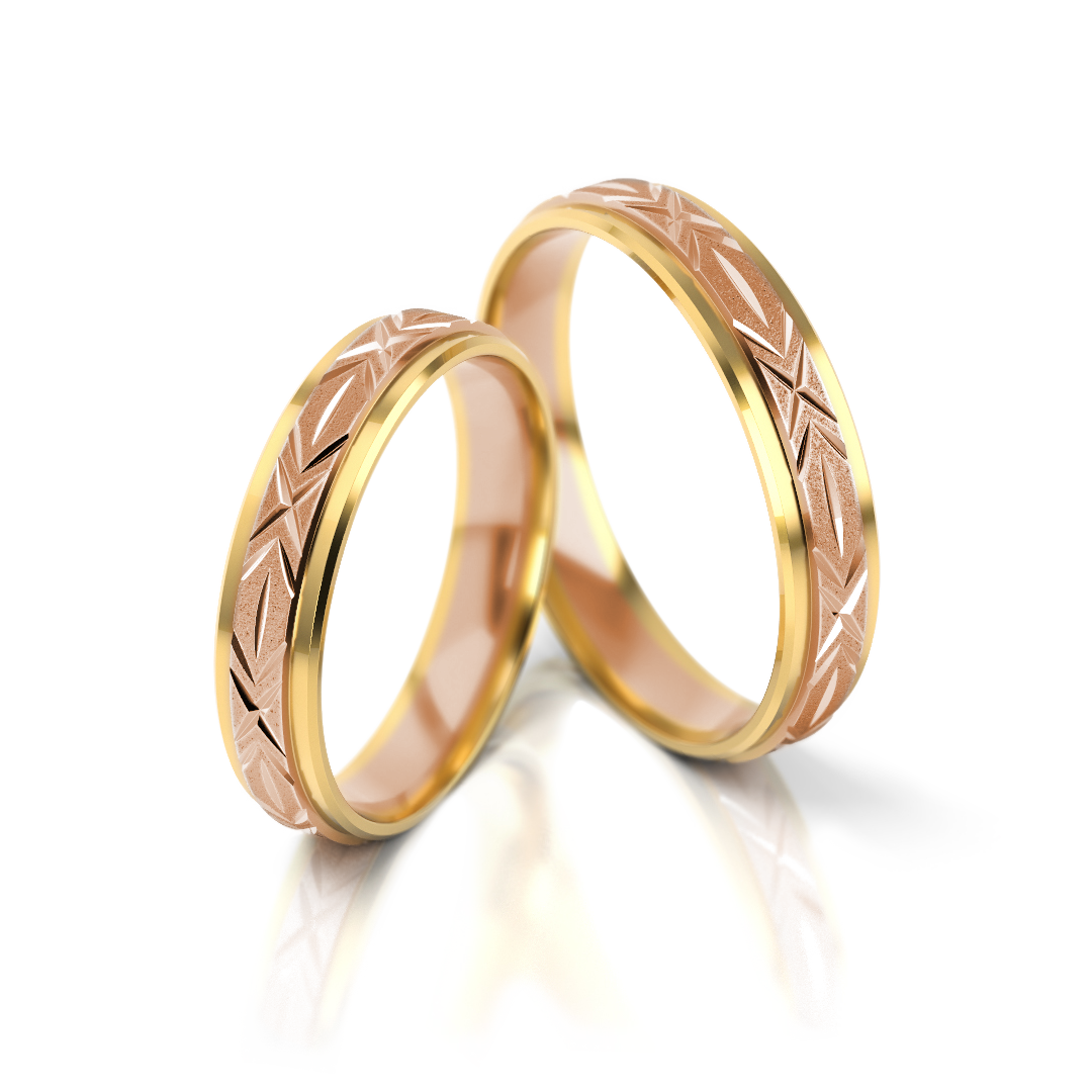 Diese Trauringe von Stelmach vereinen schlichte Eleganz mit einem besonderen Detail. Gefertigt aus edlem Gelbgold (wahlweise in Legierungen von 333 bis 750), präsentieren sie sich mit einer feinen, geometrisch inspirierten Gravur, die dem klassischen Ringdesign einen modernen Charakter verleiht.