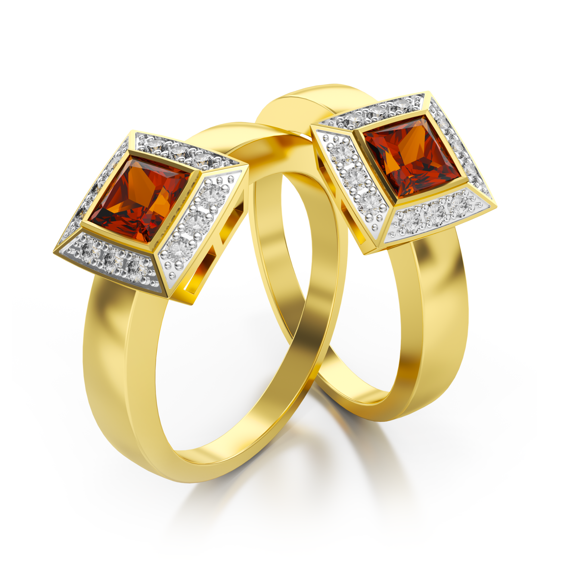 Der Verlobungsring ST17 aus Gelbgold vereint zeitlose Eleganz mit der warmen Ausstrahlung eines farbigen Edelsteins. Im Zentrum steht ein Granat in der Größe 4 × 4 mm, dessen tiefroter Farbton im warmen Gelbgold besonders harmonisch wirkt und dem Ring Charakter sowie Ausdruck verleiht.